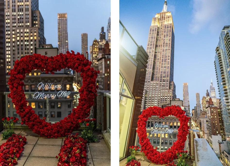 Surprise your partner with the luxury Penthouse proposal. Located right on the 5th avenue, this cozy indoor location has an outdoor terrace and Empire State Building view.